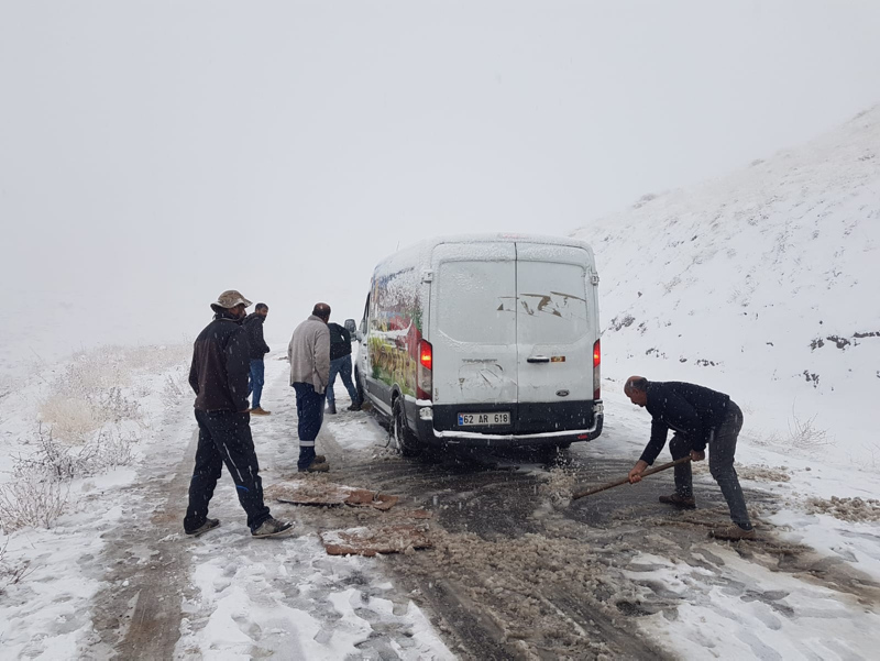 Tunceli'ye de mevsimin ilk karı düşerken, kara hazırlıksız yakalanan bazı sürücüler yolda mahsur kaldı.