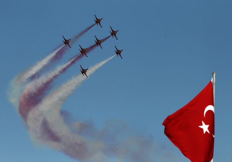 Daha sonra havalanan Türk Yıldızları, yaptıkları birbirinden zor hareketlerle izleyenlerin beğenisini kazandı.