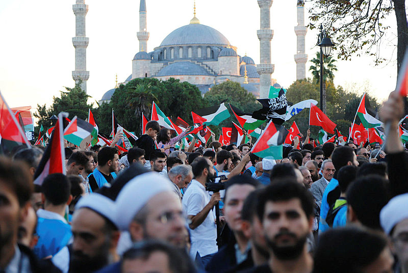 İstanbul'da da Beyazıt Meydanı'nda toplanan binlerce kişi İsrail'in gerçekleştirdiği katliamı kınamak için Ayasofya Camii'ne kadar yürüyüş düzenledi.