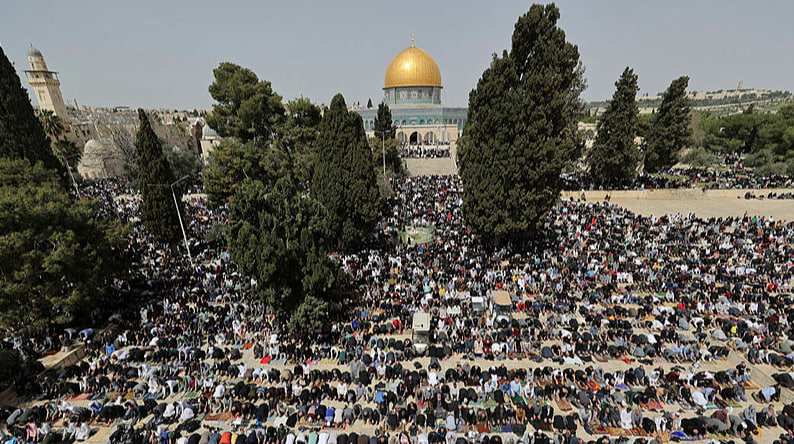 İşgal altındaki Doğu Kudüs'ün Eski Şehir bölgesinde Harem-i Şerif'e çıkan dar sokaklar ve çarşılarda büyük yoğunluk yaşandı. Kudüs İslami Vakıflar İdaresinden yapılan yazılı açıklamaya göre, Aksa'da ramazan ayının ilk cumasına yaklaşık 100 bin kişi katıldı.