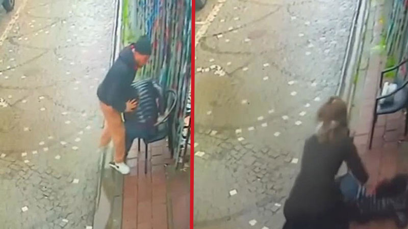 Güvenlik kameralarına yansıyan görüntülerde, ağır yaralanan Çali yerde yatarken T.S.K'nin şemsiye ile saldırmaya devam ettiği görülüyor.