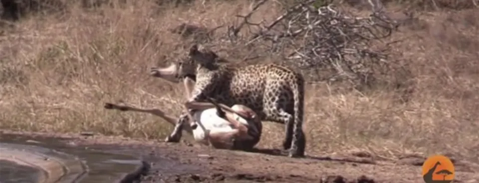 Minik havuzdan kurtulamayan içlerinden biri leopara av alıyor.