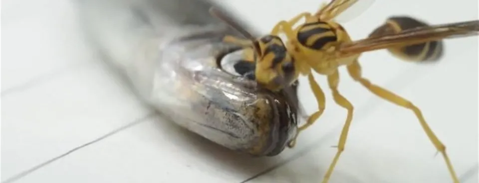 Yaban arısı yakın çekimde balığın gözünden beslenirken kameraya kaydedildi.