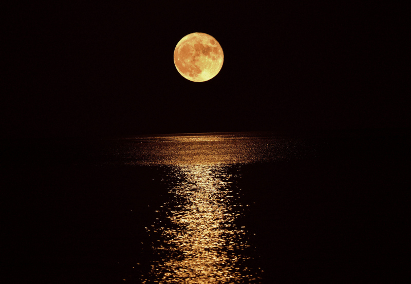 Bitlis'in Ahlat ilçesinde gün batımı sonrası ortaya çıkan dolunayın Van Gölü'nde oluşturduğu yakamoz görenleri mest etti.