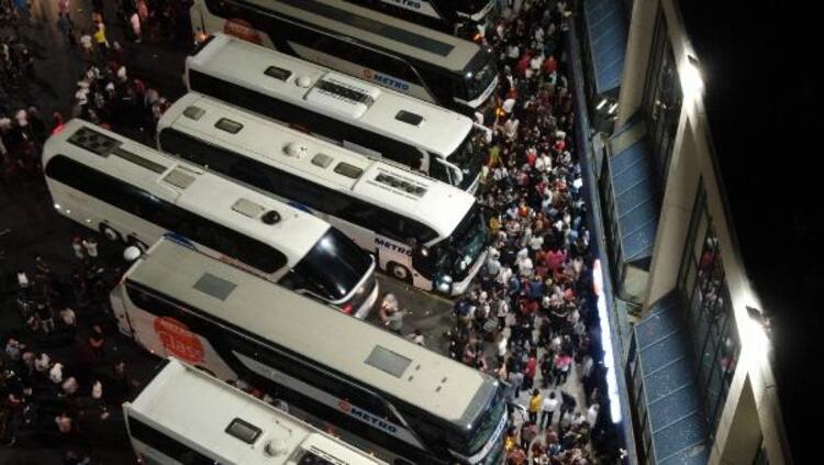 Otogardaki kalabalık gece boyu devam etti.