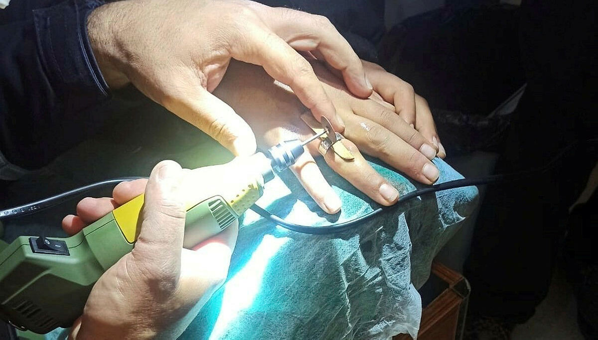 Durumun bildirilmesi üzerine hastaneye gelen AFAD ekipleri tarafından yürütülen titiz çalışma sonucu vatandaşın parmağında sıkışan yüzük özel aletlerin yardımıyla kesilerek çıkarıldı.
