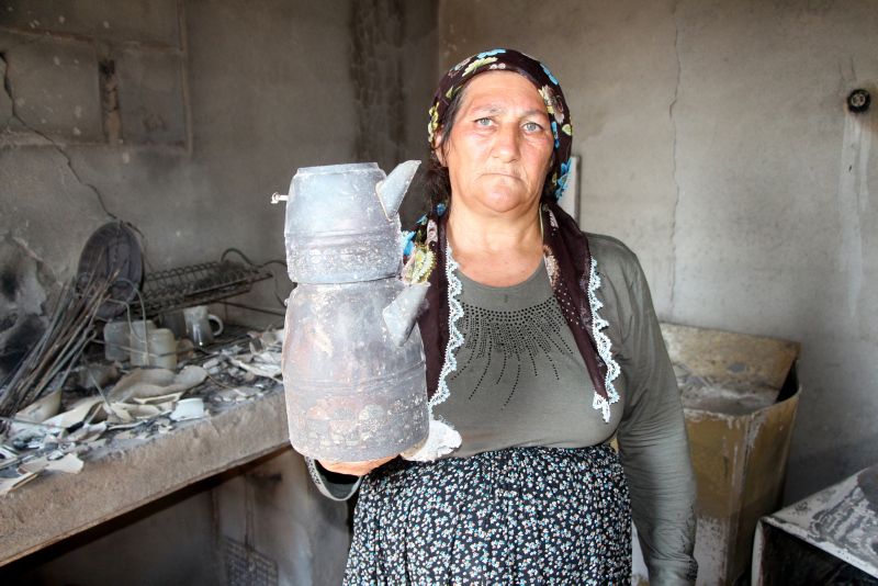 Evi, ahırı ve buğday ambarı kül olan, 3 çocuk annesi Hatice Cilgörüzoğlu, yangına uykuda yakalandıklarını ve jandarmanın uyarısıyla köyü terk ettiklerini söyledi.