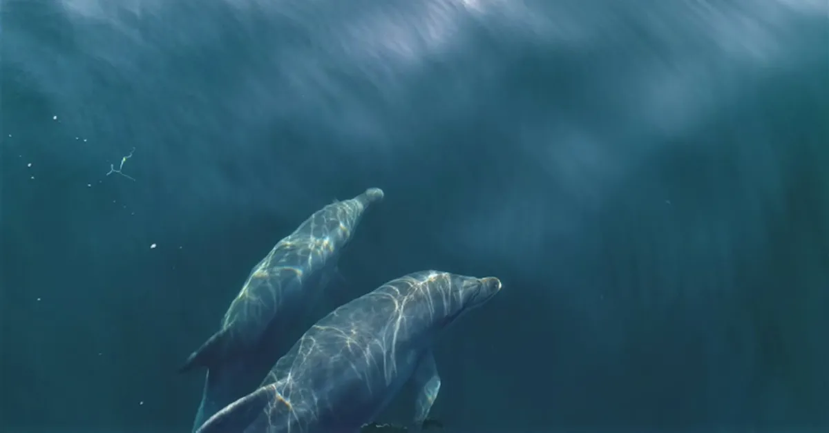 Onlarca yunustan oluşan sürüde yavru yunuslar annelerinin yanından ayrılmıyor.