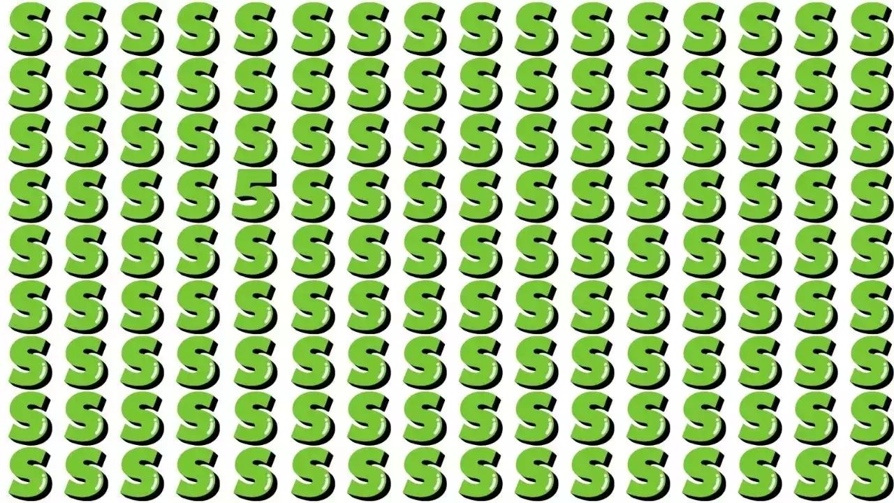 Bu testteki "5", "S" harfiyle benzer çizgilere ve eğrilere sahip olması nedeniyle neredeyse kamufle edilmiştir. "S" okyanusu testinin ardında yatan fikir, gözlerinizi ve beyninizi bir uyum içerisinde çalıştırmayı gerektiriyor. Bu tasarım, tekrarlayan desenler arasında gizlenmiş ince farklılıkları bulmanızı sağlamak üzere hazırlandı. Beyninizin desen tanıma yeteneği bu test sırasında zorlanacak.