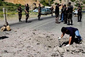 Kanlı saldırılarını iyiden iyiye arttıran terör örgütü PKK, hain yüzünü bu kez Hakkari'de gösterdi. Terör örgütü üyelerince Hakkari-Çukurca karayoluna döşenen mayın, Hakkari Vali Yardımcısı Edip Çakıcı'nın geçişinden kısa süre sonra patladı. Çakıcı, "30 metre geçtikten sonra patlama oldu. Neyseki herhangi bir can ve mal kaybı yok" diye konuştu. Bu arada Şırnak'taki Küçük Kato Dağı'nın hakim noktalarında konuşlu bulunan 2 askeri üs bölgesine, saldırı düzenlendi. Çatışma yaklaşık bir saat sürdü. İlçe merkezinden de duyulan çatışma sırasında, BDP'li Belediye Başkanı Yusuf Temel'in evine de 4 kurşun isabet etti. Yoğun ateş altında kalan PKK'lı teröristler daha sonra kaçtı. Güvenlik güçleri, kaçan PKK'lıların yakalanması amacıyla operasyon başlattı.