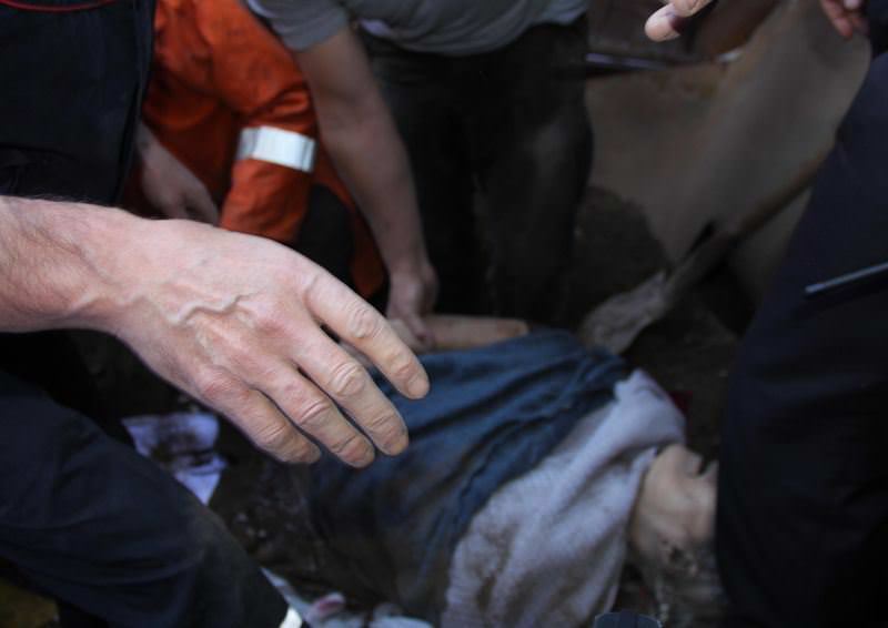 Göçük altında kalan 2 işçi ağır yaralı olarak çıkarıldı.