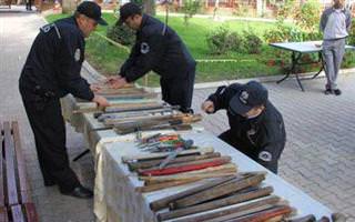 Adana polisi 3 günde bin 500 dolmuşta yaptığı aramada çok sayıda demir ve tahta sopa, testere, döner bıçağı ile sadece İstanbul polisine dağıtılan teleskopik cop ele geçirdi.