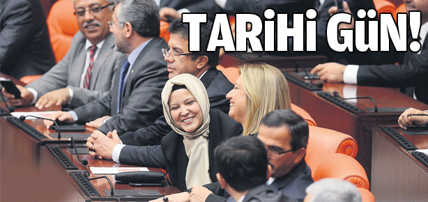 Başbakan Erdoğan, 4 milletvekilinin TBMM'ye türbanla gelmeleri ile ilgili açıklamalarda bulundu. Başörtülü vekillerin Meclis'e girmesi ile ilgili ilk kez konuşan Erdoğan, "Tabii ki bu atmosferi tarihi bir atmosfer olarak, demokratikleşme sürecinin önemli bir adımı olarak görüyorum" dedi.