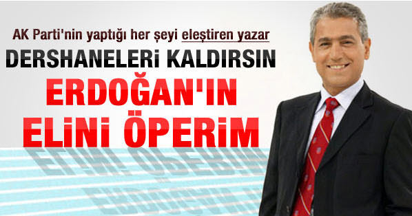 "Dershaneler son 50 yıldır var. Ben 30 yıldır gazetecilik yapıyorum. Kenan Evren'den bu yana gelen her iktidar kaldıracağını söylüyor. Başbakan kaldırırsa elini öperim ve oyumu da AK Parti'ye veririm."