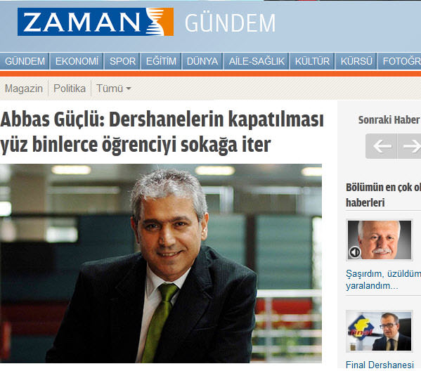 Abbas Güçlü bu hafta yazdığı yazısında ise dershanelerin kapatılmasının çocukları sokağa iteceğini söyledi. Güçlü, "Dershaneleri sadece, sınavlara öğrenci hazırlayan kurumlar olarak görmek ise yanlışların en büyüğü olur. Çünkü dershaneler okulların sağlayamadığı sosyal ortamı sundukları için öğrencilerin tercih nedeni. Dershanelerin kapatılması yüz binlerce öğrenciyi sokağa iter" dedi.