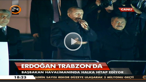 Kalabalığa seslenerek "Bütün bu kirli oyunları, kirli tuzakları Trabzon hep birlikte bozmaya var mıyız? diyen Erdoğan "Bu zaten gerekli yerlere ulaşmıştır. Bu sefer söz sizin, karar sizin ve burada görüldüğü kadarıyla fazla bir zaman yok. 95 gün sonra 30 Mart'ta sandıkta en güzel cevabı vereceksiniz. Benim Trabzonlu kardeşlerim büyükşehir belediyesinin mensupları, vatandaşları olarak inşallah Türkiye'ye Karadeniz'den en güzel cevabı verecek. Özellikle ben Yalnız Değilsiniz Platformu'na ve bu platformun çağrısına iştirak eden tüm Trabzonlu,Gümüşhaneli, Bayburtlu ve Rize'den gelen hemşehrilerime teşekkür ediyorum. Sizler bizi güvendiniz, 11 yıldır bizi yalnız bırakmadınız ve yine aynı kararlılıkla bu yola devam edeceğiz. Karadeniz'in mensupları olarak Samsun Çarşamba'da, Ünye'de, Fatsa'da, Ordu'da gördüm. Bugün de Giresun'da, Görele'de 10 binlerle her ilçede bindirilmiş kıtalar değil toplanan kardeşlerimi gördüm. Biz birbirimize sevdalıyız, bizim birbirimize aşkımız var. Yola çıkarken dedik ya; uzun ince bir yoldayız, gidiyoruz, gündüz gece. Gideceğiz gündüz gece. Düşünün artık ahlak sınırlarını aşmış tipler türedi bu ülkede. Devletin içinde paralel yapılaşmaya gayret edenler türedi. Kardeşlerim, bu çeteleri, bu tür örgütleri nasıl mafyayı çökerttiysek bu çeteleri de çökertmiştik. Bunların şekli farklı. Şimdi de bunları çökerteceğiz. Ve artık nerede gelirse gelsin rengi ne olursa olsun asla bu konularda taviz yok, asla. Bunu herkesin iyi bilmesi gerekir ifadelerini kullandı.