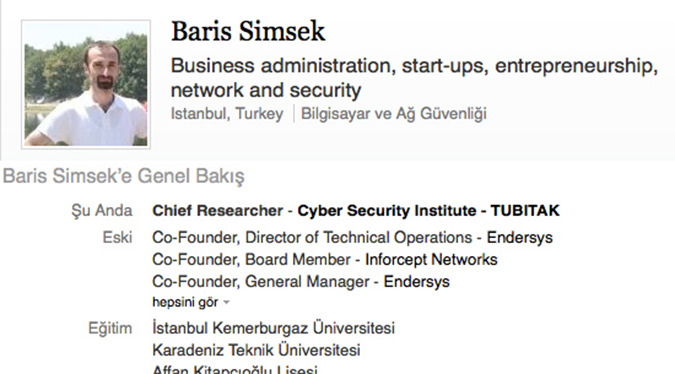Söz konusu iki firma Emniyet Genel Müdürlüğü'ndeki ihaleden sonra B. Ş.'nin yine Yönetim Kurulu Üyesi olduğu Inforcept Bilişim isimli firma ile TUBİTAK'ın ihalelerine girdi. Bu ihaleye de çok düşük bir fiyat vererek ihaleyi Inforcept isimli firma adına almış. TÜBİTAK'ın en kripto bölümü olan 'Cyber Security Institute' de görev alan Şimşek buranın da bilişim alt yapısını ve yazılımlarını hazırlamış. Devletin bir çok kurumuna girerek bilişim alt yapısını özel yazılımlarla gerçekleştiren Endersys Bilişim ve Inforcept Bilişim şirketleri bu daireler dışında başka resmi dairelerin de alt yapı yazılımlarını hazırladığı kaydedildi. Konunun uzmanı ve iki şirketin ortağı B.Ş. halı hazırda da halen TUBİTAK'ta görev yaptığı belirtildi.