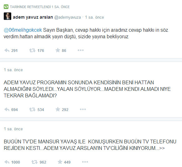 İşte Melih Gökçek'in Arslan'ın yalanını ortaya çıkardığı tweetleri