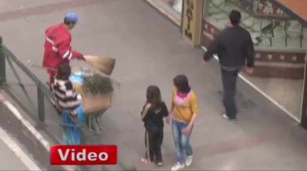 Bir süre kızlarla diyaloğunu sürdüren işçi, kızların yanından ayrıldığı sırada gördüğü fiziksel tepki karşısında şaşkınlığını gizleyemedi. Temizlik işçisini ve arabasını itekleyen kızlar, ellerindeki meyveyi de yere atarak temizlemesini istedi. Bir süre zor anlar yaşayan temizlik işçisi görevini yaptığını söyledi.