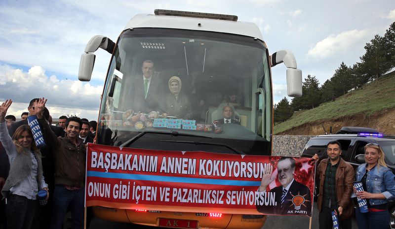 Daha sonra havalimanına hareket eden Başbakan Recep Tayyip Erdoğan, yol güzergahında "Başbakanım annem kokuyorsun. Onun gibi içten ve pazarlıksız seviyorsun" pankartını açan grubu görmesi üzerine otobüsü durdurdu. Erdoğan, pankartla otobüsün önüne gelen grupla fotoğraf çektirdikten sonra buradan ayrıldı.