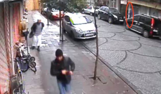 Çevredeki iki kamera tarafından kaydedilen görüntülerde Çeçen uyruklu tetikçinin ateş anı görülüyor.