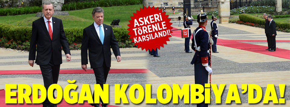 Cumhurbaşkanı Erdoğan, Latin Amerika ziyaretinin ilk durağı olan Kolombiya'da Kolombiya Devlet Başkanı Juan Manuel Santos Calderon tarafından resmi törenle karşılandı. Erdoğan ve Calderon karşılama töreni sonrası baş başa görüştü. Görüşme ardından liderler düzenlenen ortak basın toplantısında konuştu. Toplantı öncesi heyetler arası anlaşmalar imzalandı.