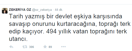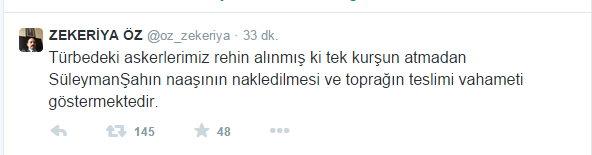 Paralel yapının yargıdaki temsilcisi Zekeriya Öz, aşırı kilo alarak askerlikten kaçmaya çalıştığı günleri unutarak Şah Fırat operasyonuna ilişkin kahramanlık tweetleri attı. Türk ordusunu eleştirmeye çalışan Zekeriya Öz sosyal medyada alay konusu oldu.