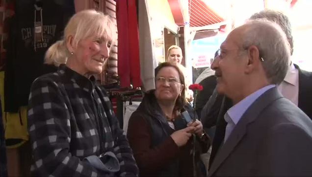 İzmir'in Çeşme İlçesi'nde çarşı esnafını ziyaret eden CHP Genel Başkanı Kemal Kılıçdaroğlu, bir kadın esnaf tarafından eleştiri yağmuruna tutuldu. Kılıçdaroğlu'na tepki gösteren esnaf, "Eski bir CHP’li olarak söylüyorum; proje üretin. Yani bırakın dalaşmayı. Ben halkım ve CHP’ye birkaç dönemdir oy vermiyorum" dedi.