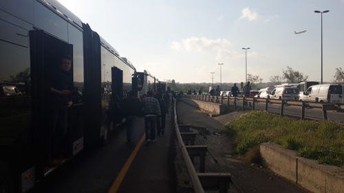 Metrobüs yolunda kaza! Trafik durdu