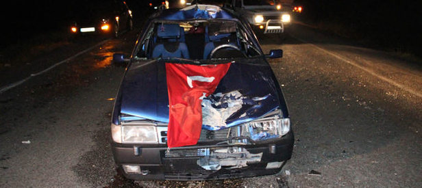 Zonguldak'ın Ereğli İlçesi'nde, asker uğurlamasından dönen gençlerin içinde bulunduğu otomobil, ineğe çarptı. Kazada 4 kişi yaralandı.