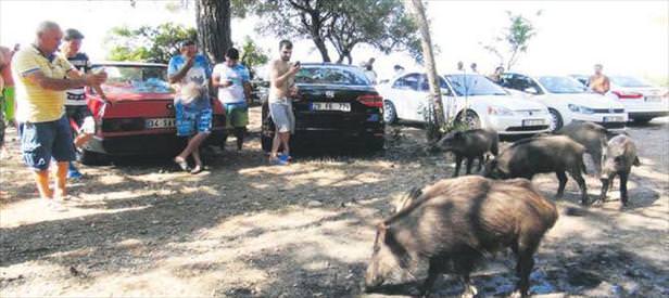 Aydın'ın Kuşadası İlçesi'ndeki Dilek Yarımadası Kalamaki Milli Parkı'nda yaşayan yaban domuzları, sürüler halinde insanların piknik yaptığı alanlara indi. Sürüler halinde piknikçilerin arasında dolaşan yaban domuzları, tedirginliğe neden olmaya başladı. Kimi piknikçiler korkudan uzaklaşırken; bazı vatandaşlar hem yiyecek verdi. Hem de cep telefonlarıyla domuzları görüntüledi. Hatta selfie çekenler bile oldu. Bu arada bir yaban domuzunun, insanlara fazla yaklaşmaya çalışan yavrularını sert hareketlerle uzaklaştırmaya çalışması da dikkati çekti.