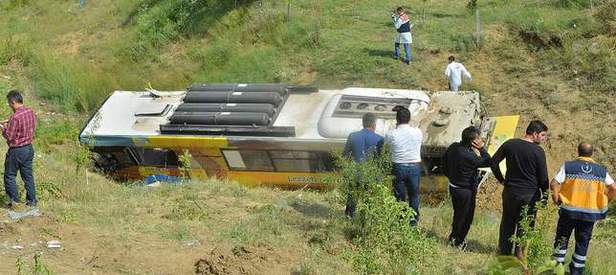 Ankara'nın Gölbaşı İlçesi'ne bağlı Bezirhane Mahallesi'ne yolcu taşıyan Ankara Büyükşehir Belediyesi EGO otobüsü virajı alamayarak şarampole devrildi.