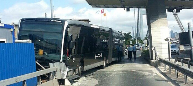 Boğaziçi Köprü gişelerinde kontrolden çıkan bir metrobüs, bariyerlere çarptı. Kazada metrobüste bulunan yolculardan biri yaralandı.