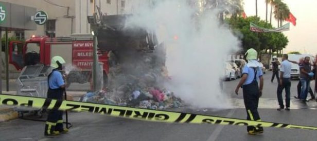 Hatay’ın İskenderun ilçesinde AK Parti binası önünde çöp konteynerinin çöp kamyonuna aktarılması sırasında patlama meydana geldi.