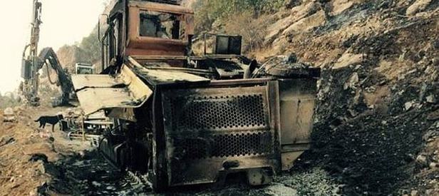Burada bir iş makinesi ve 3 kamyonuna benzin döküp ateşe veren teröristler, karanlıktan yararlanarak şantiye alanından kaçtı.
