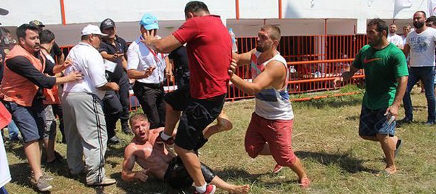 654. Tarihi Kırkpınar Yağlı Güreşleri'nde başaltı boyu güreşinde ve sonrasında spora yakışmayan görüntüler oluştu.