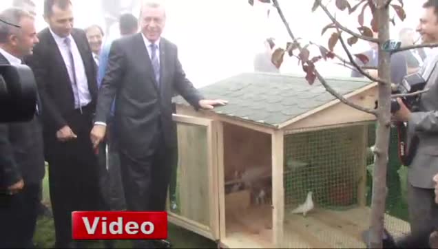 Güvercinleri bırakırken Orman ve Su İşleri Bakanı Veysel Eroğlu'ndan bilgi alan Erdoğan, "Çevreci olduğumuzun bunlar birer sembolü, işareti olarak dünyayla bütünleşecekler" ifadesini kullandı.