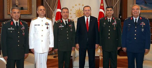 Genelkurmay Başkanı Orgeneral Hulusi Akar ve kuvvet komutanları Cumhurbaşkanı Recep Tayyip Erdoğan'ı ziyaret etti.