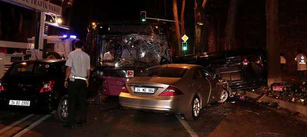 Zincirleme kaza saat 20.00 sıralarında meydana geldi. Görgü tanıklarının ifadesine göre, plakası belirlenemeyen bir motosiklet Beşiktaş'tan Kabataş yönüne ilerlerken, Dolmabahçe Sarayı önünde aniden fren yaptı. Arkasından gelen 34 V 5591 plakalı lüks otomobilin şoförü de motosiklete çarpmamak için aniden durdu. Lüks aracın arkasından gelen 34 PPV 97 plakalı Sarıyer-Beşiktaş hattında çalışan belediye otobüsünün şoförü de otomobile çarpmamak için direksiyonu kırdı. Sürücünün kontrolünden çıkan belediye otobüsü, karşı yöne geçerek, Kabataş'tan Beşiktaş yönüne ilerleyen 34 ZD 18 22 plakalı panelvan ile 34 MD 964 ve 34 BG 2996 plakalı otomobillerle kafa kafaya çarpıştı.