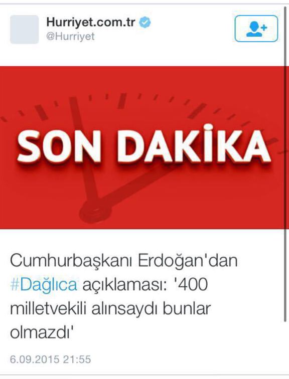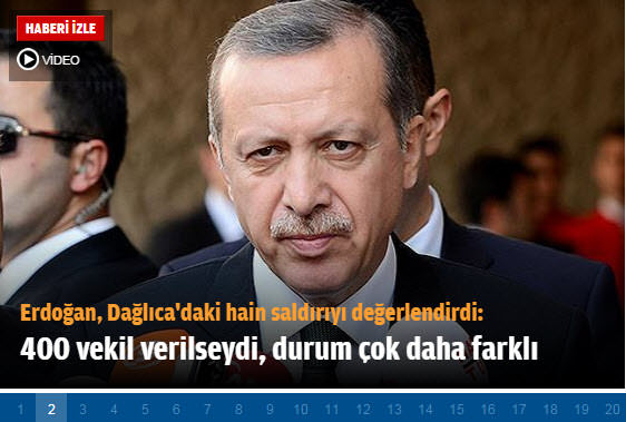 Paralel medya ve Aydın Doğan medyası uzun süre sonra ilk kez canlı yayına çıkan Cumhurbaşkanı Erdoğan'a saldırmak için ortak harekete geçti. Erdoğan'ın canlı yayında yapmış olduğu '400 vekil' açıklamasını çarpıtarak yayınlayan, Hürriyet ve Zaman gazetesi, söz konusu demeci Dağlıca'daki saldırıya cevap olarak verilmiş gibi sundu.