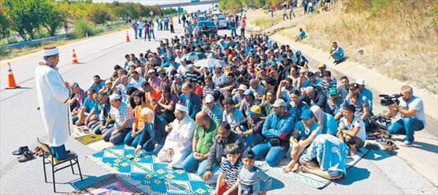 Sığınmacılar, Yunanistan'a oradan da Almanya'ya geçmek için İstanbul'dan Edirne'ye yaya olarak ulaştı. Ancak Yunanistan'a geçişlerine izin verilmeyen yaklaşık 2 bin Suriyeli, 4 gündür TEM Otoyolu Edirne gişeleri yakınlarından ayrılmadı. Günlerdir otoban kenarını mesken tutan mülteciler, Yunanistan'a geçme ümidiyle beklemeye başladı. Dün yaşanan bir olay ise Türkiye'nin insanı hedef alan mülteci politikasını dünyaya kanıtladı. Edirne Valisi Dursun Ali Şahin, Yunanistan'a geçmek isteyen ancak izin verilmeyen Suriyeliler'in oluşturduğu kalabalık bir grupla TEM'de Cuma namazı kıldı. Şahin, İstanbul karayolu üzerinde iki şeridi kapatılan yolda mültkecilerle birlikte saf tuttu. Cuma namazı için TEM'in iki şeridi trafiğe kapatıldı.