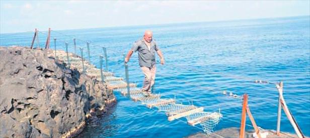 Zonguldak Ereğli'de amatör balıkçılar "Bereket kayası" dedikleri ada görünümlü kayaya ulaşmak için asma köprü yaptı. Kırmacı Mahallesi Ölüce mevkisindeki en fazla avın yapıldığı kayadan vazgeçemeyen balıkçılar, iki çelik halat ve tahtalar kullanarak 1 haftada asma köprü inşa etti. Taci Ceylan, "Kayaya çıkarken denize düşüyor ya da yaralanıyorduk. Köprü yapmaya karar verdik. Malzemleri taşımak zordu. Ama başardık" dedi.