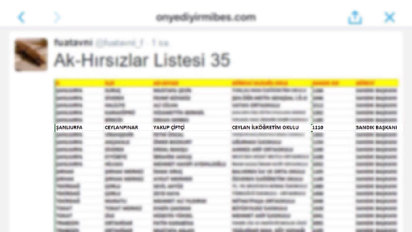 Paralel Yapı'nın maşası olan Fuatavni, Twitter'dan yaptığı paylaşımda masum insanları terör örgütüne hedef göstermekten çekinmedi. Paylaştığı isim listesinden sonra terör örgütü PKK, Şanlıurfa'da harekete geçerek bombalama eylemi gerçekleştirdi. Listede yer alan isimlerden Y.Ç'nin yakınlarından M.Ç'nin evine bombalı saldırı düzenlendi.