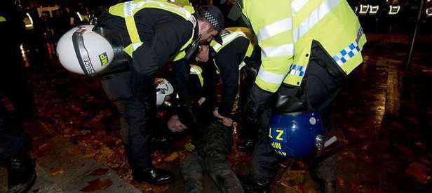 Guy Fawkes gününde düzenlenen gösteriler için Londra polisi olağanüstü güvenlik önlemleri aldı. Sabahın erken saatlerinde Meclis binası ve Trafalgar meydanı kordon altına alındı.