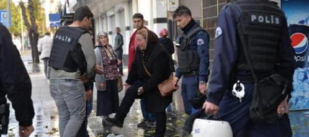 Çok sayıda kişinin gözaltına alındığı, olaylarda toplanan gruplara müdahale eden polis, yolda yürüyen bir kadına basınçlı su sıkması üzerine, kadın tepki gösterdi. Polis ile kadın arasında tartışma çıkarken, yaşlı kadın polislere, "Ben yolumda gidiyordum bana niye su sıkıyorsunuz? Ben size ne yaptım bu ne vicdansızlık? Burası Kürdistan ne istiyorsunuz? Yolda yürüyemeyecek miyiz? Bak elimde taş yok" dedi. Kadının sözleri üzerine polis, "Ne Kürdistan'ı burası Türkiye" diye cevap verdi. Daha sonra kadın bölgeden uzaklaştırıldı.