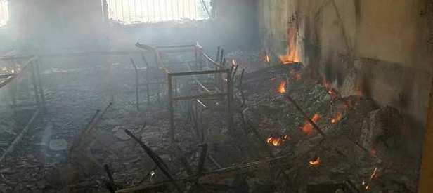Okulun giriş ve üst katına doğru atılan molotofkokteylleri, okulda küçük çaplı yangın çıkmasına sebep oldu.