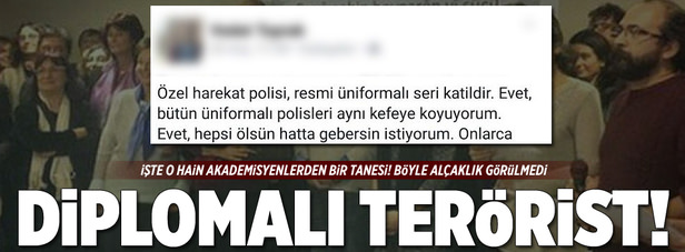 Bütün üniformalı polislerin katil olduğunu söyleyen akademisyen, "Varsın iki yaşında çocukları olsun varsın nişanlı olsunlar, hepsi de gebersin" yazdı.