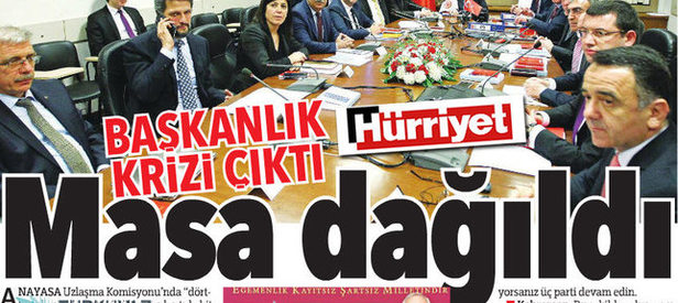 CHP yeni anayasa çalışmaları için toplanan Uzlaşma Komisyonu'ndan sudan sebeplerle ayrılırken Doğan medyası da her zaman olduğu gibi yine AK Parti'yi hedef seçerek komisyonun dağılmasından AK Parti'yi sorumlu tuttu.