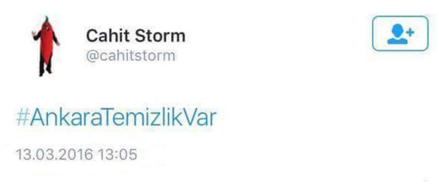 Ankara'da 37 kişinin hayatını kaybettiği bombalı saldırısı öncesi, PKK yanlısı bir hesaptan skandal bir tweet atıldı. PKK terör örgütü yanlısı Cahit Storm takma adlı bir kişinin Twitter'da saat 13.05'te paylaştığı "Ankara'da temizlik var" mesajı, dikkatleri yine kanlı örgüte yöneltti. Hesap daha sonra nedeni bilinmeyen bir şekilde kapandı. ABD'nin Ankara Büyükelçiliği'nin de 11 Mart'ta sitesinden vatandaşlarını terör saldırısına karşı uyarması dikkati çekti. Uyarıda "Bahçelievler'deki Türk hükümetine ait bina ve lojmanlara potansiyel bir terörist saldırı olabileceğine yönelik istihbari bilgi olduğu" ifadesi dikkati çekti.