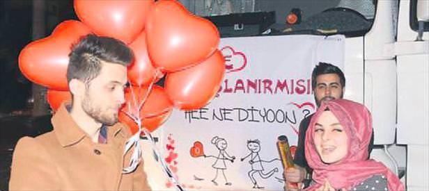 Konya'da dün 24 yaşındaki Onur Yılmaz, Selçuk Üniversitesi Sosyal Bilimler Meslek Yüksekokulu'nde öğrenciyken tanıştığı ve iki yıldır birlikte olduğu Kübra Sütçü'ye (24) sürpriz bir evlenme teklifi yaptı. Arkadaşına ait bir TIR üzerine 'Benimle yaşlanır mısın? He ne diyon?' yazılı pankart astıran Yılmaz, kız arkadaşınını içinde bulunduğu otomobilin önünü kesti. Sevgilisini otomobilden indiren Yılmaz, dizüstü çökerek 'Benimle evlenir misin?' dedi. Genç kızın "evet" demesi üzerine Yılmaz, yanında getirdiği yüzüğü sevgilisinin parmağına taktı. Birbirlerine sarılan çifti arkadaşlarıda yalnız bırakmadı. Sürpriz evlilik teklifi nedeniyle araç trafiği de bir süre aksadı.